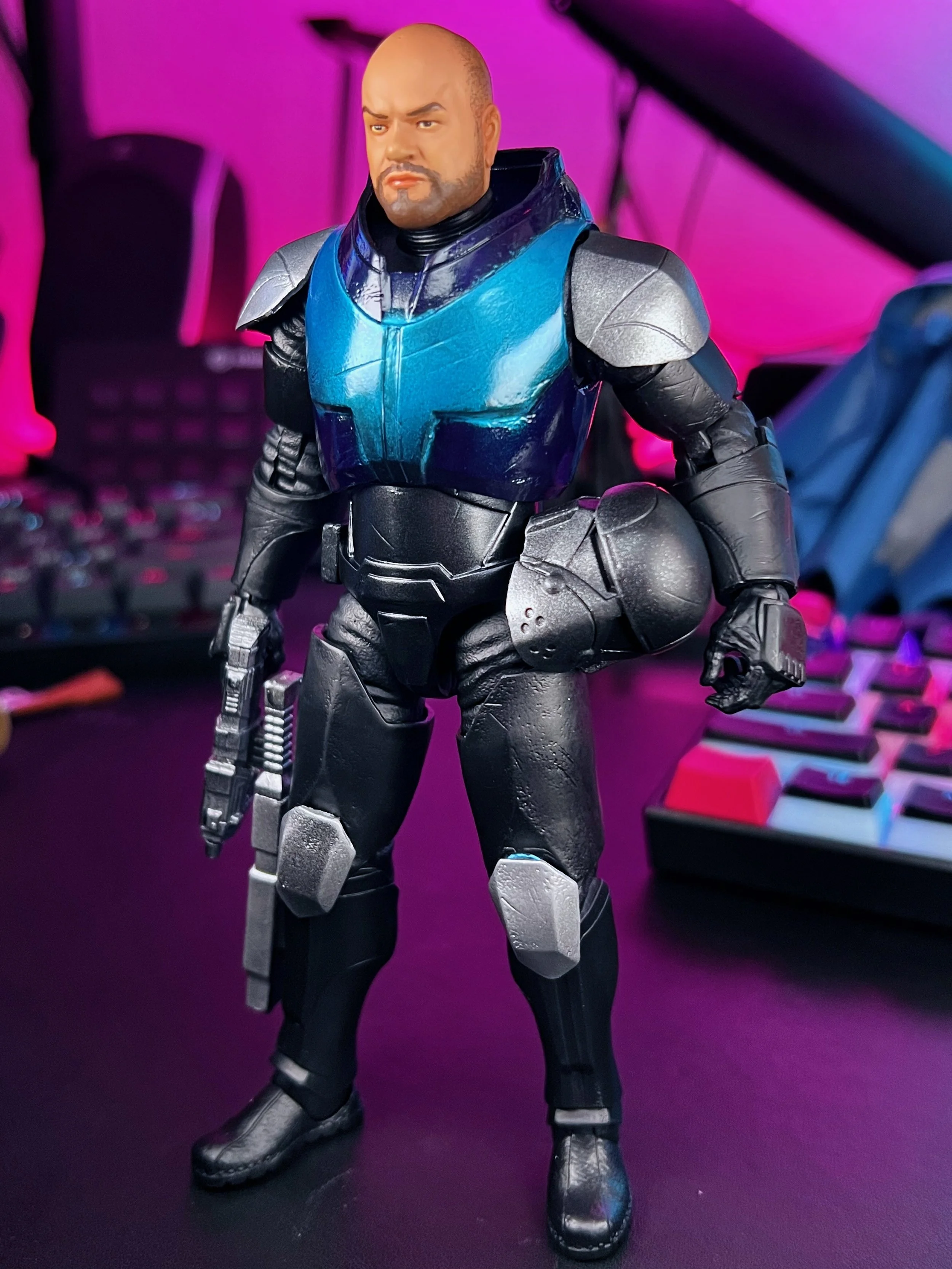 I’m not a tiny man, so a normal action figure body wasn’t really going to cut it. That being said, I wanted something cool looking and imposing, and my first thought was Wrecker from Star Wars: The Bad Batch. He’s a big dude, and a bit more svelte than I, but close enough to an action-hero version of myself.