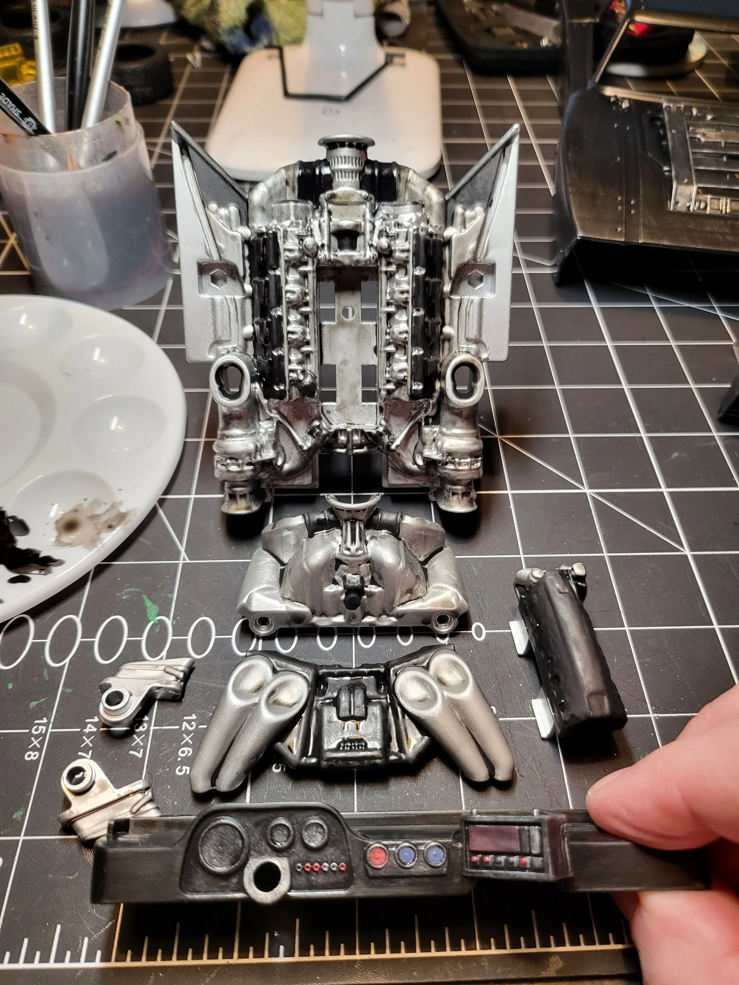 The last pieces to be painted were the wheels and some small random bits for consistency once assembled. Some brush-on clear coat was used and the painting was all done!